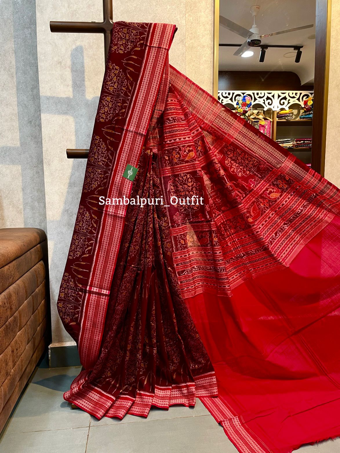 Exclusive double ikkat sambalpuri cotton saree. It comes with blouse piece.