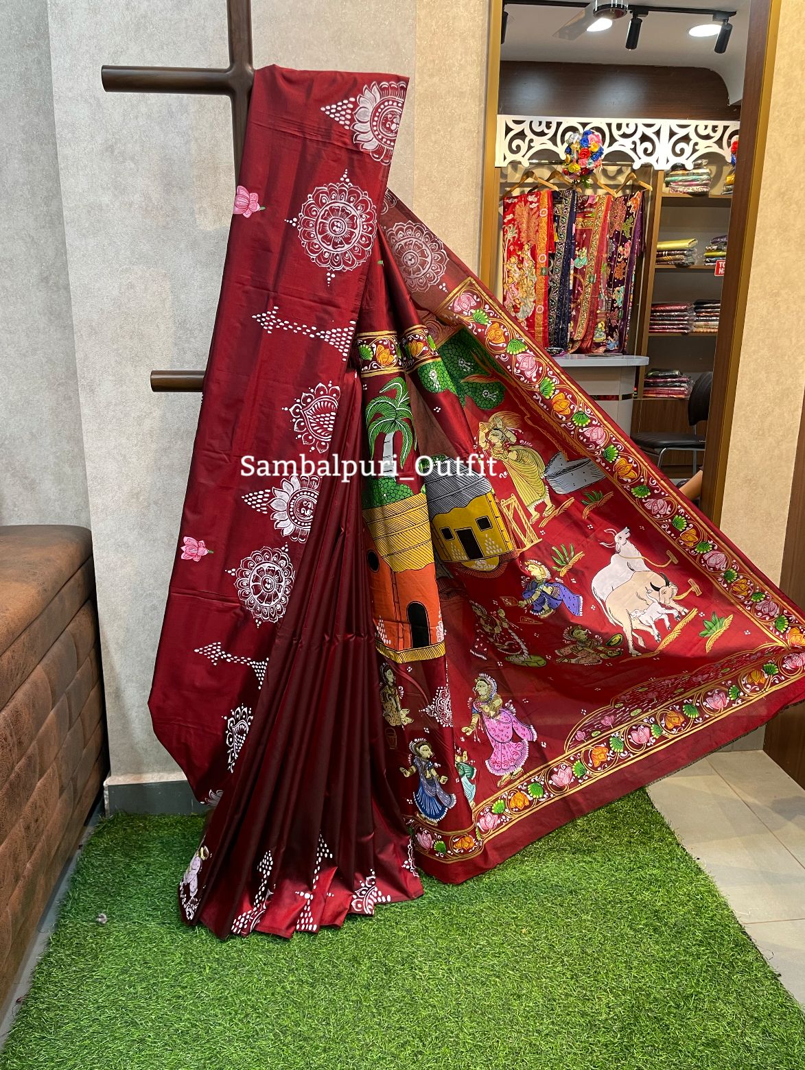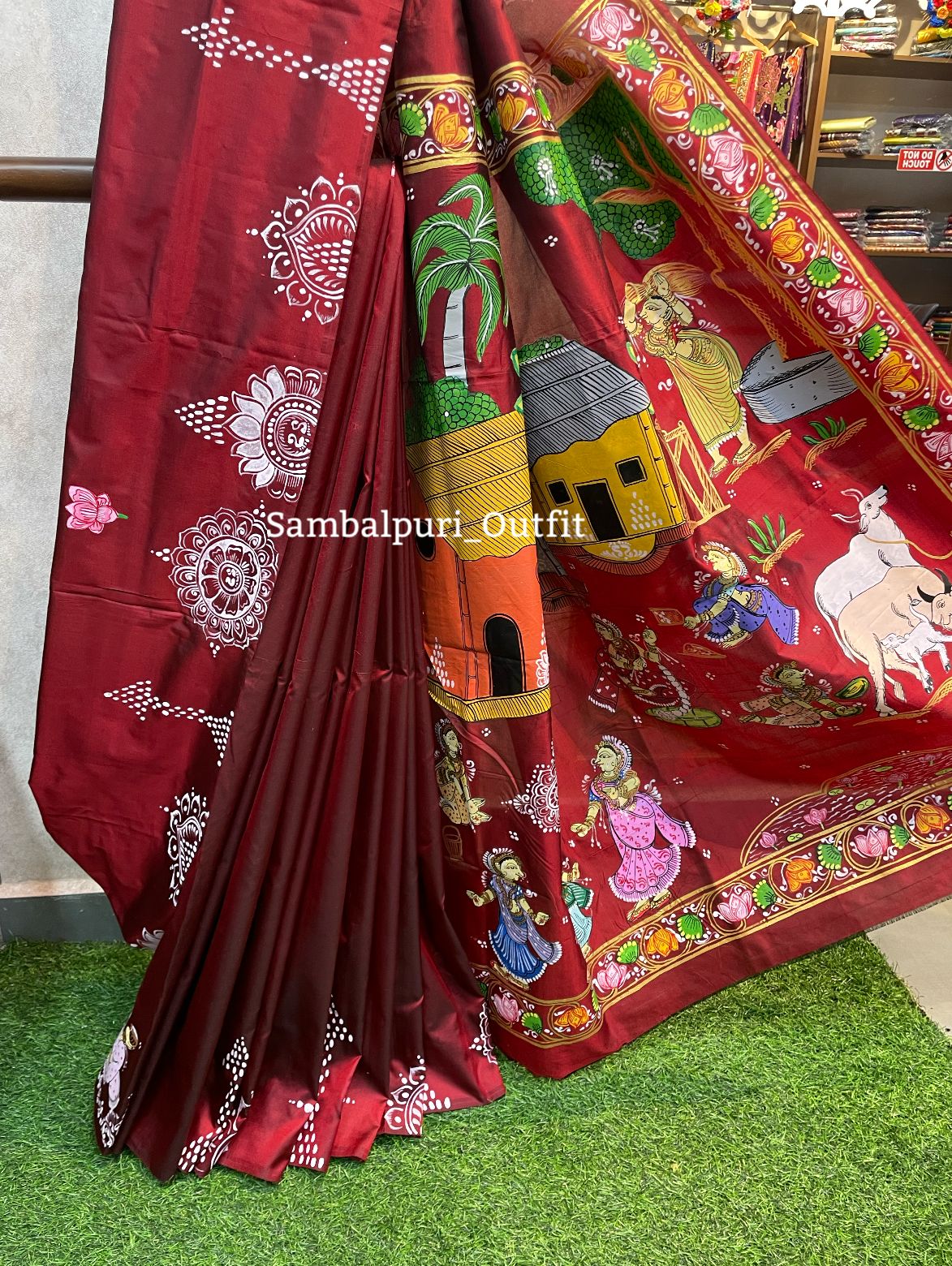 Presenting this gorgeous pure Bishnupuri silk pattachitra saree.It comes with running blouse piece.