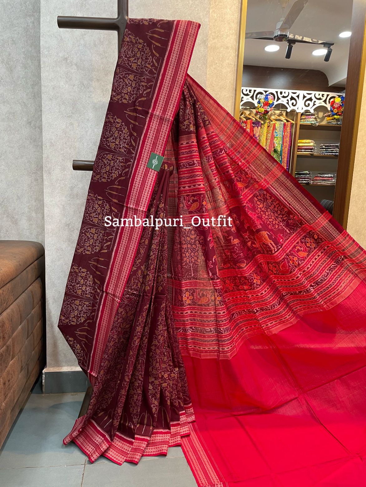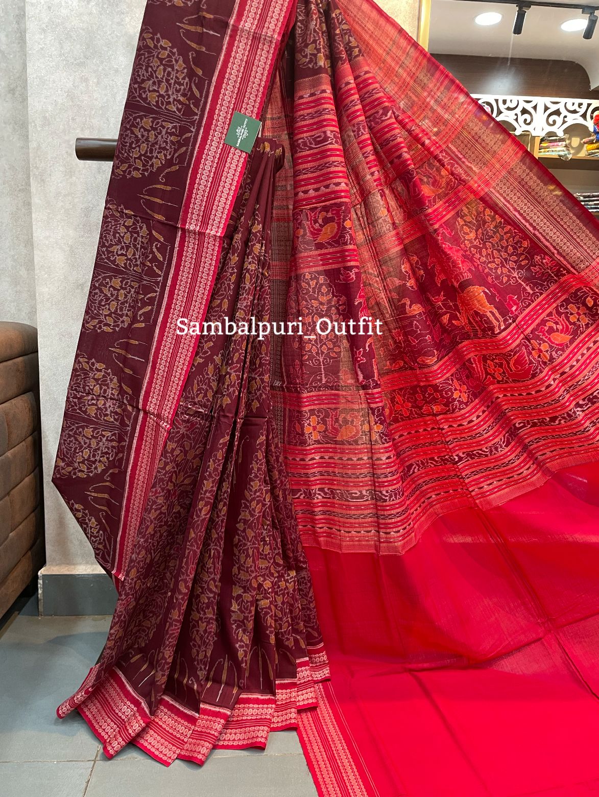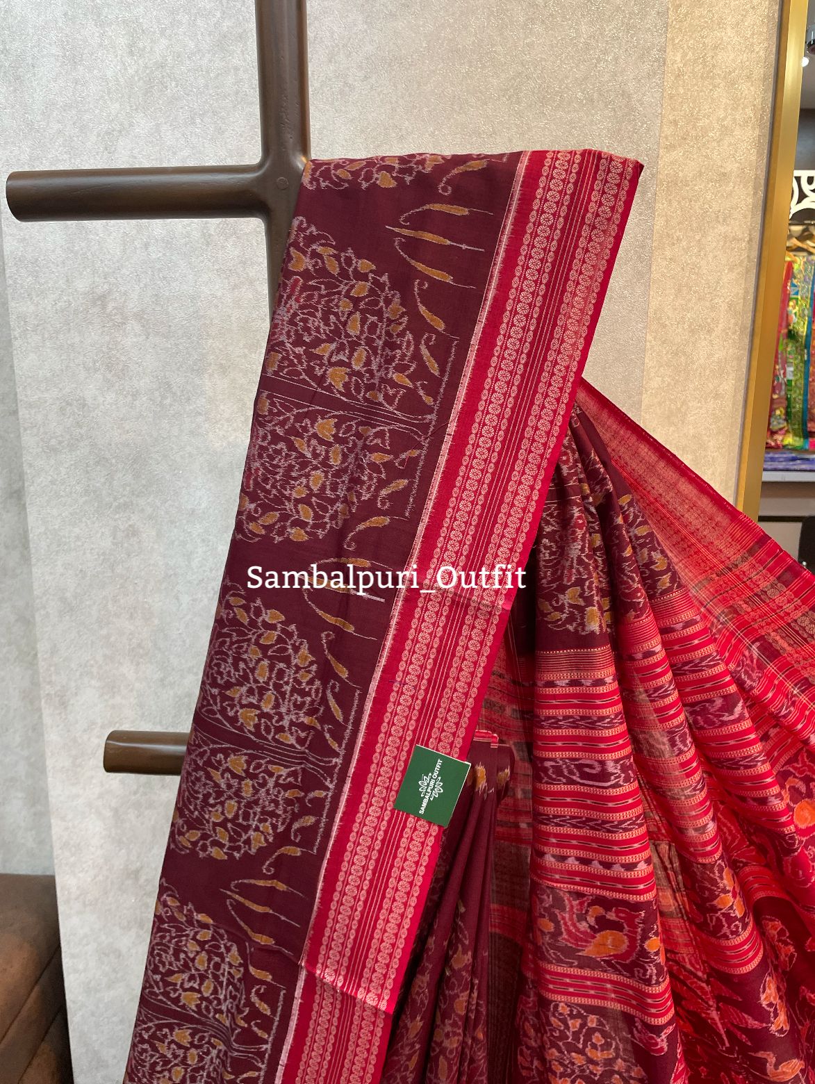Exclusive double ikkat sambalpuri cotton saree. It comes with blouse piece.