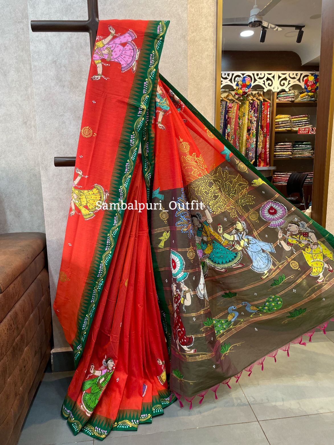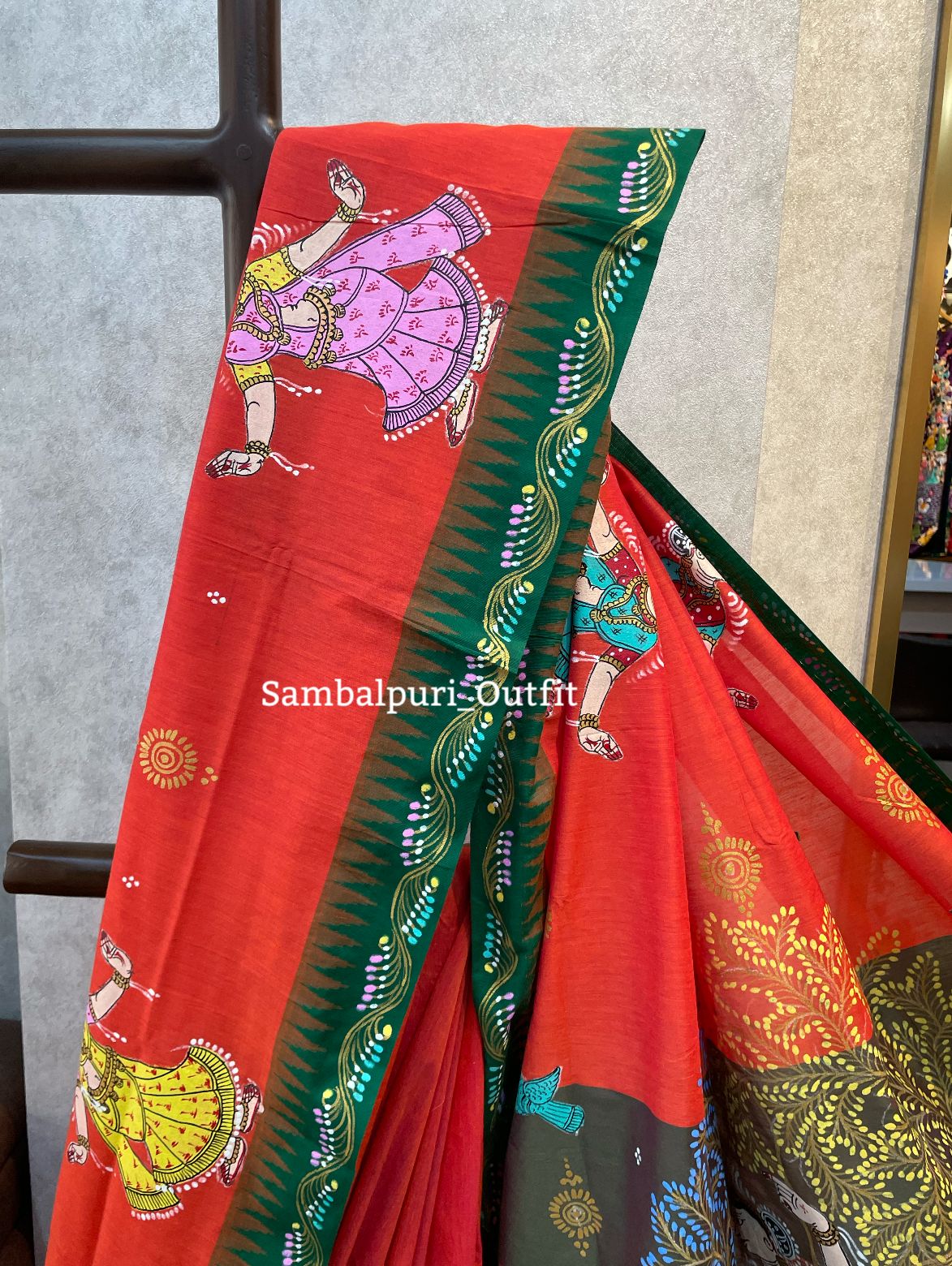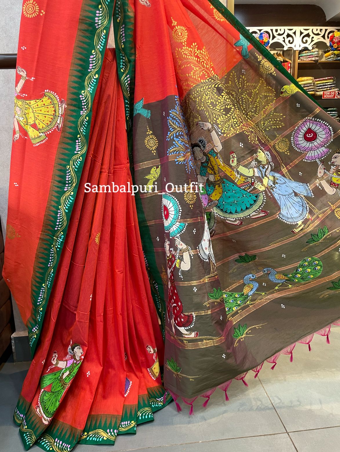 presenting this gorgeous south cotton silk (blended fabric) pattachitra saree its comes with blouse piece.