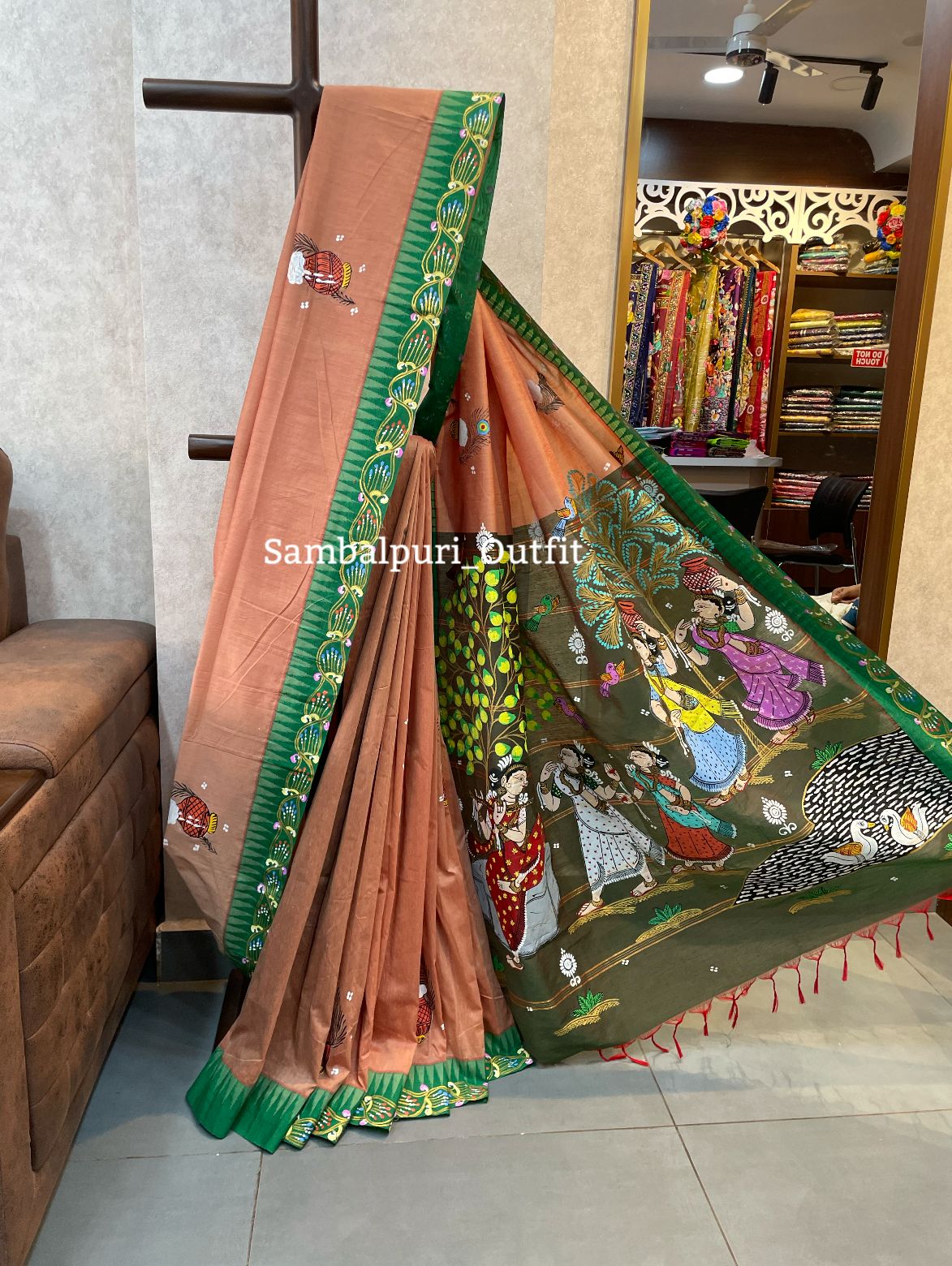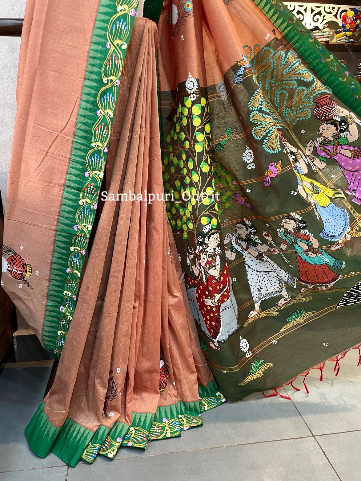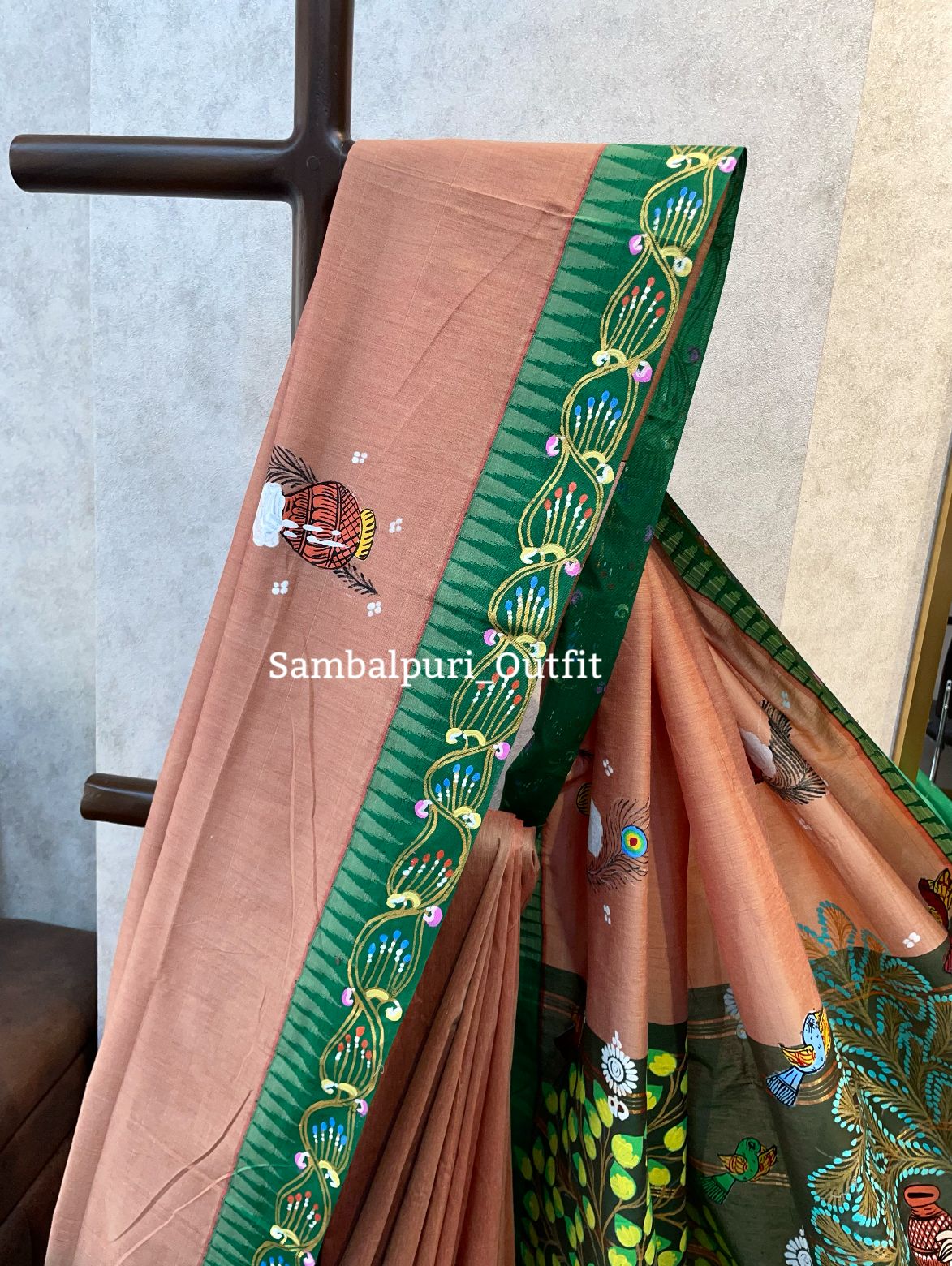 presenting this gorgeous south cotton silk (blended fabric) pattachitra saree its comes with blouse piece.